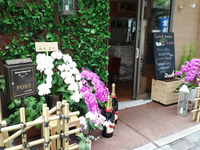 店の前には、鉄人「坂井シェフ」のお花も飾られてました。