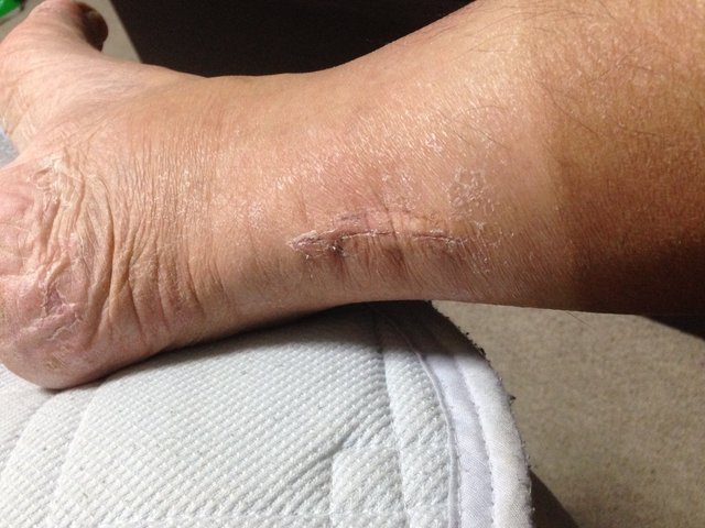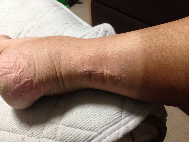 周りの皮膚が落ちてますがこれはギブスのせいですのです。