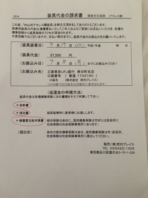 その場で関東労災病院のスポーツ整形に紹介状を書いてもらい